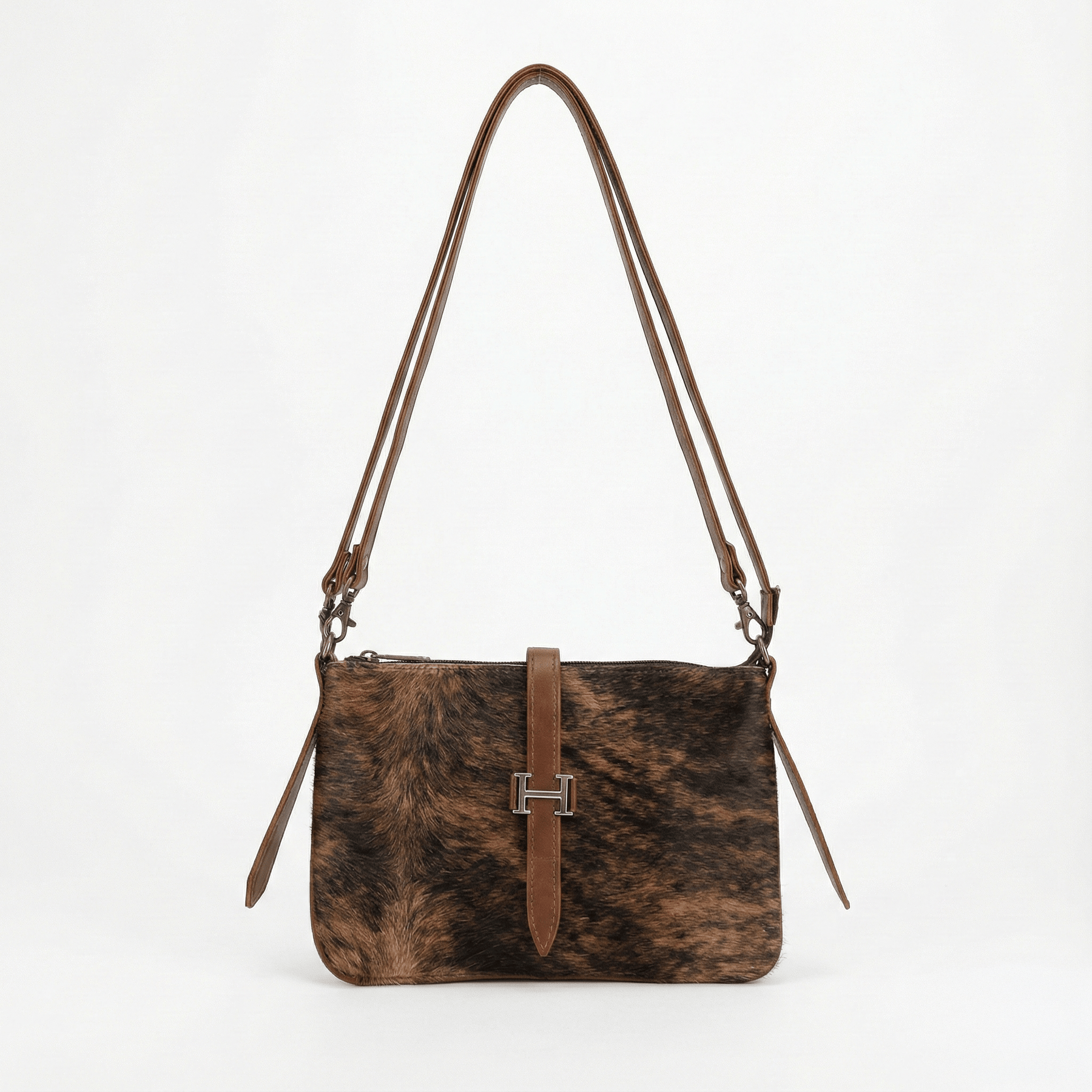 Solid Brindle Cowhide Leather Crossbody Bag | Genuine Hair-On Hide & Dark Brown Strap – 9 x 6 x 1 Inch